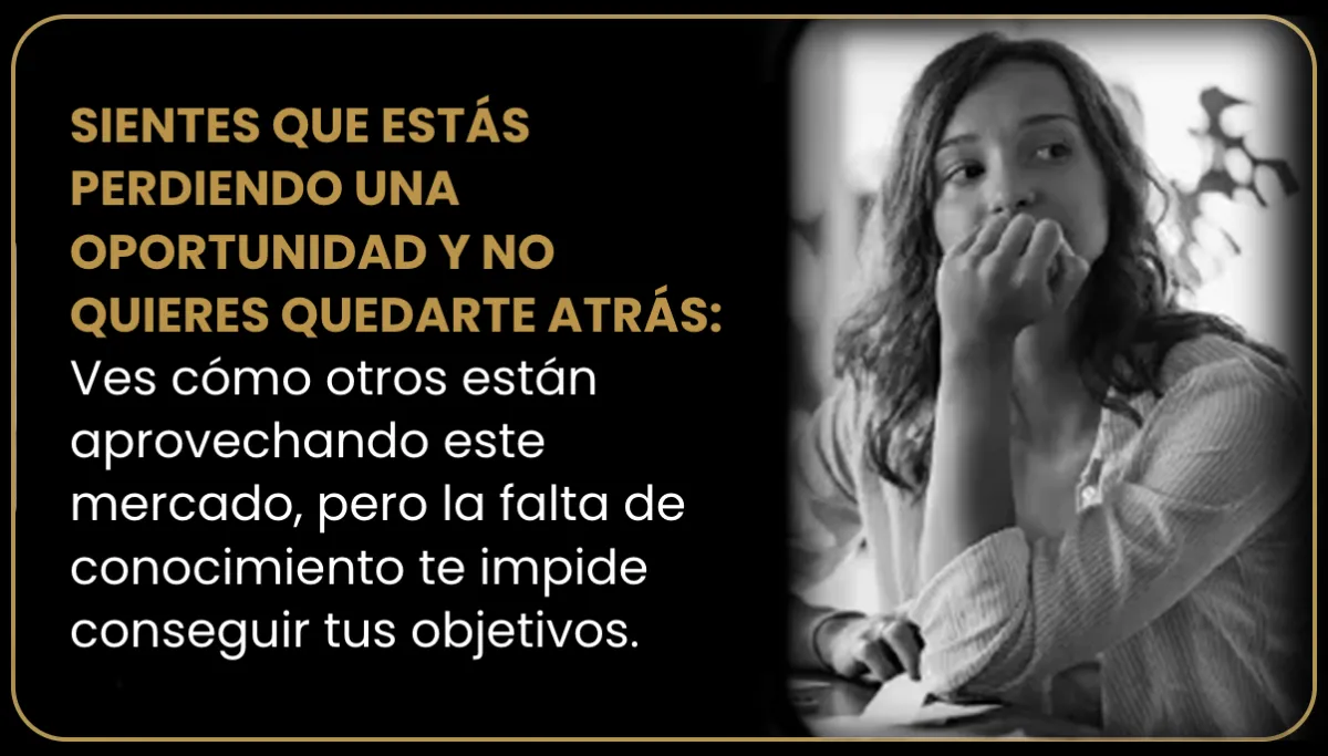 Ves cómo otros están aprovechando este mercado, pero la falta de conocimiento te impide conseguir tus objetivos.